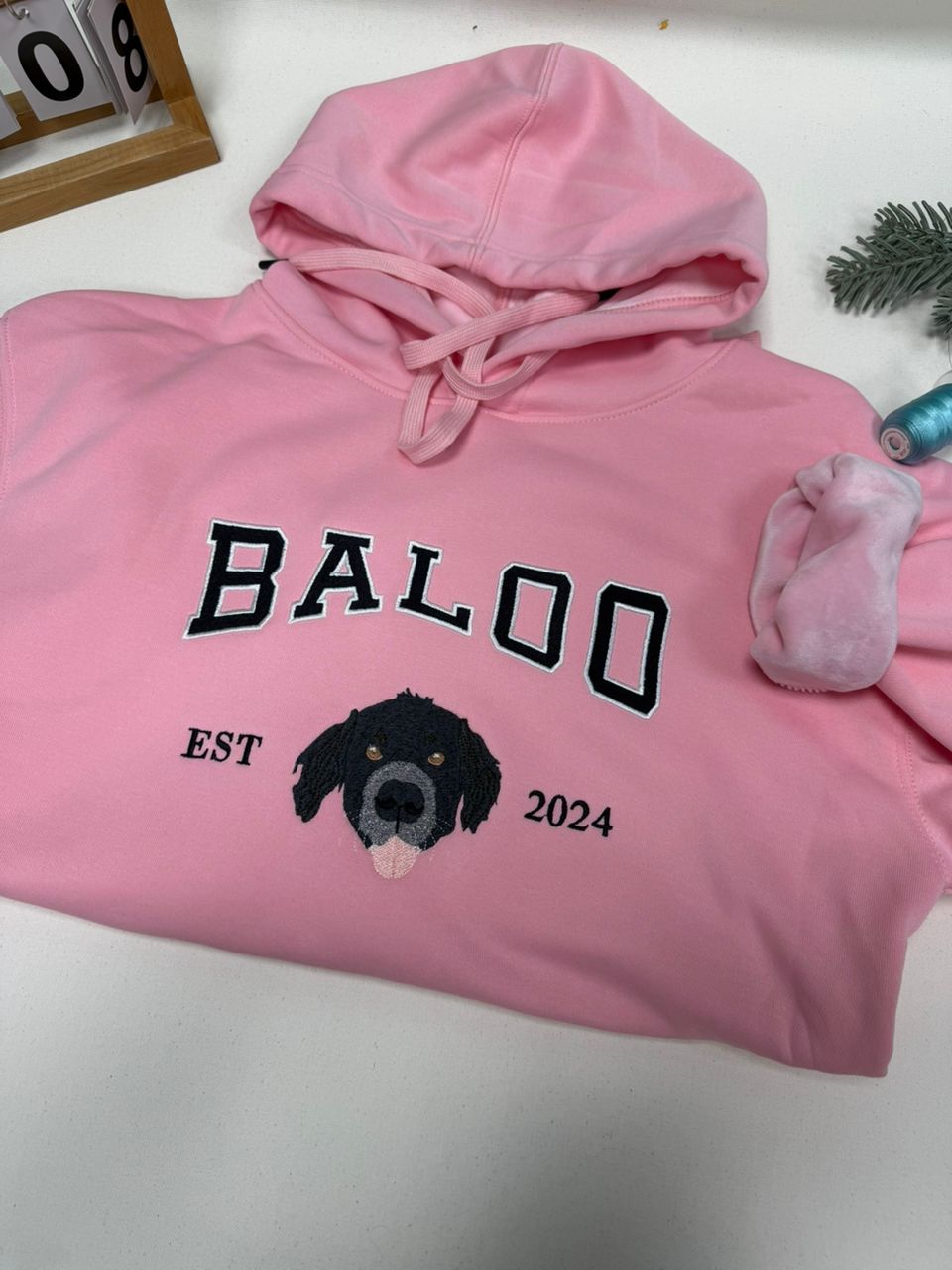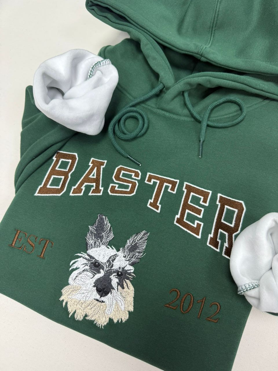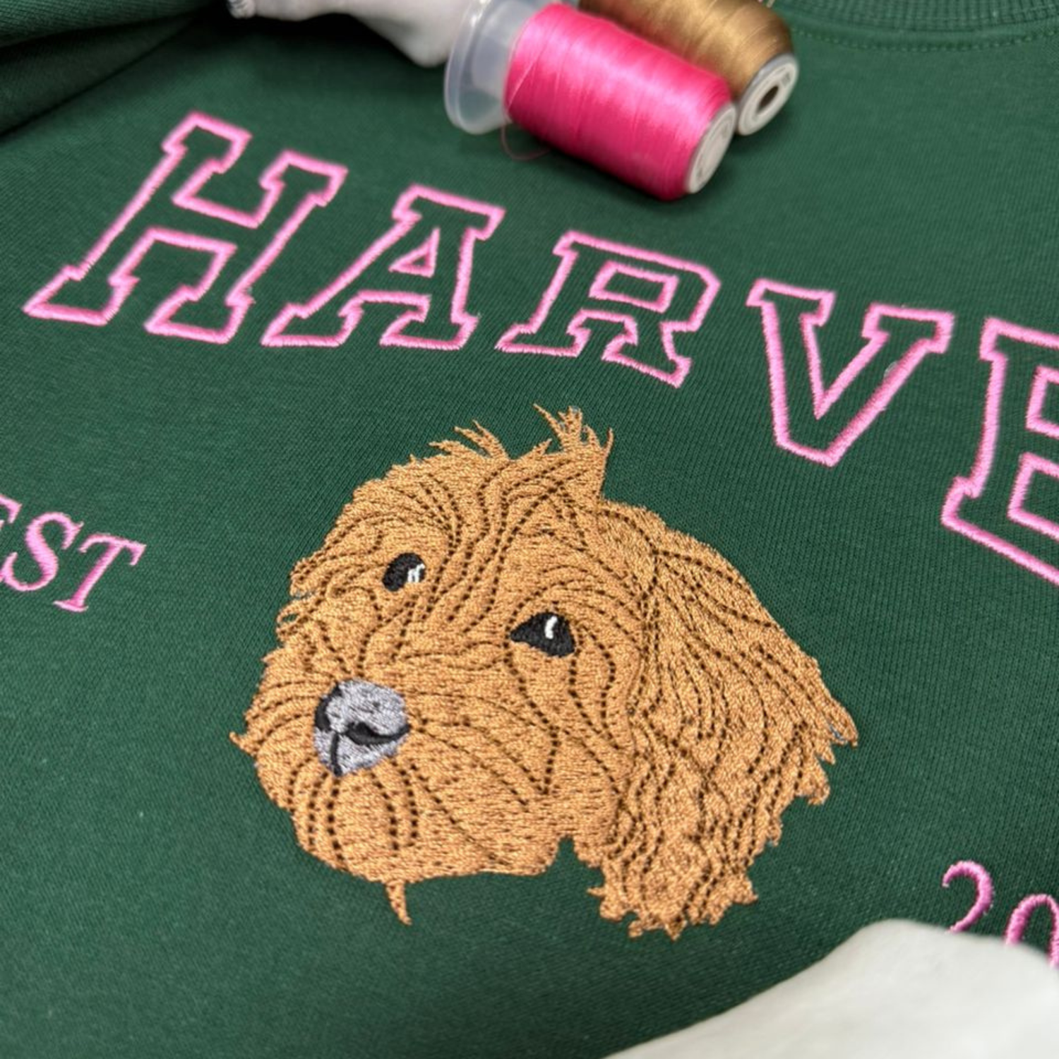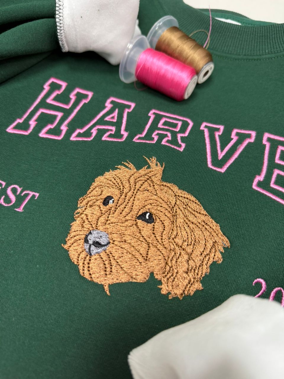 Chaque sweat est brodé avec soin, point après point, sur des machines professionnelles réglées spécialement pour votre photo.